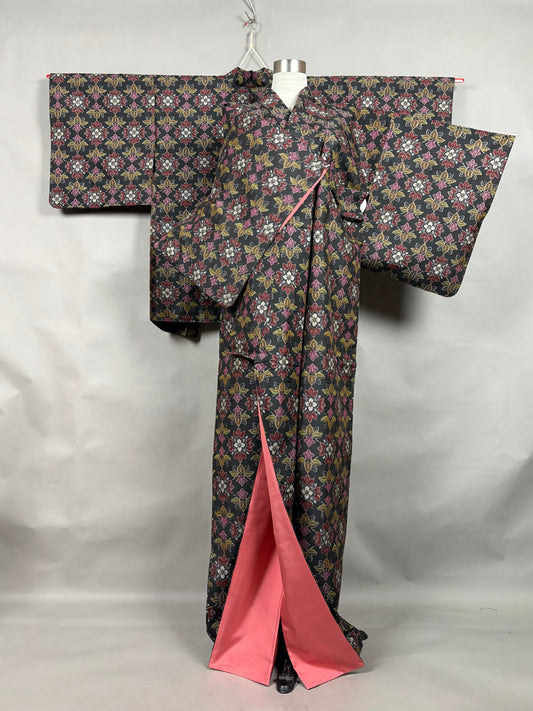SOLD【アンティーク着物】ダイヤ柄銘仙ドレス