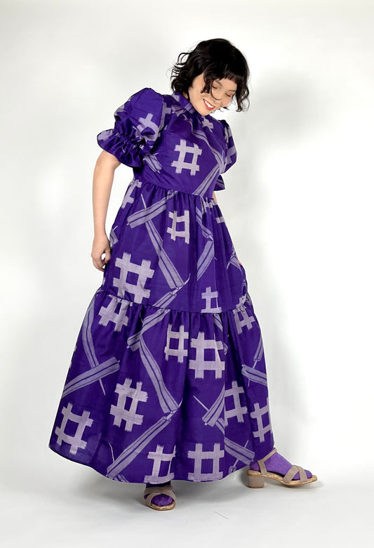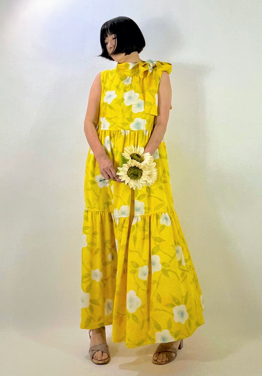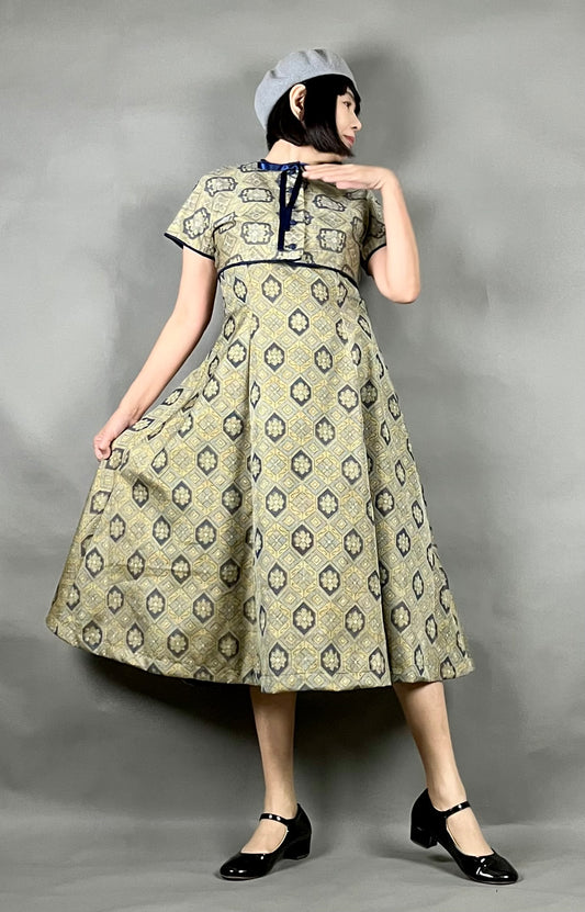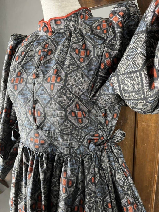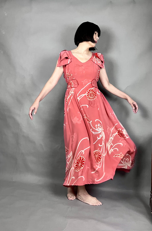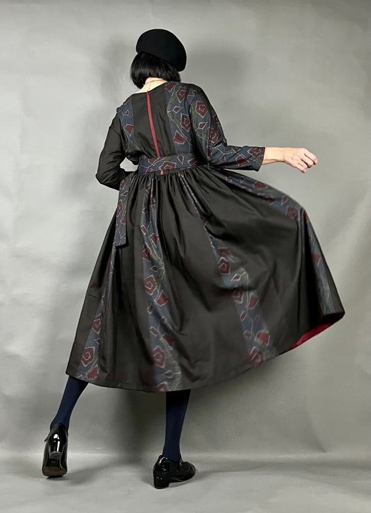 Kinsha Komon Kimono Remake “Antique Kimono Gathered Dress”