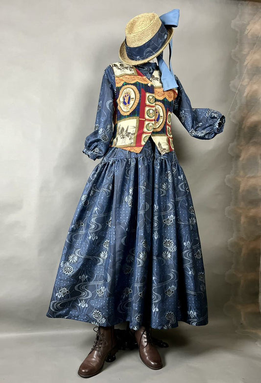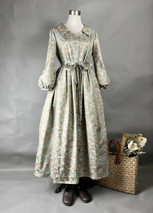 [Oshima Tsumugi] Ensemble kimono remake retro ribbon dress