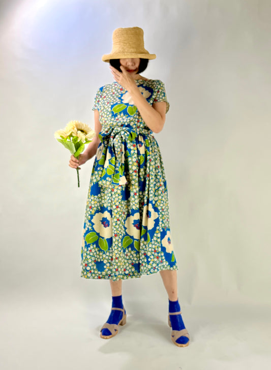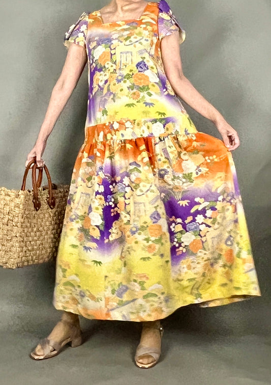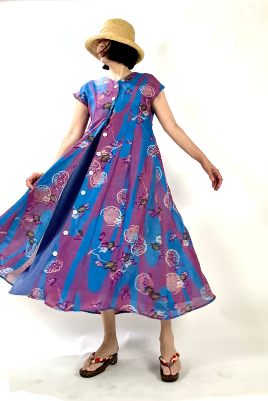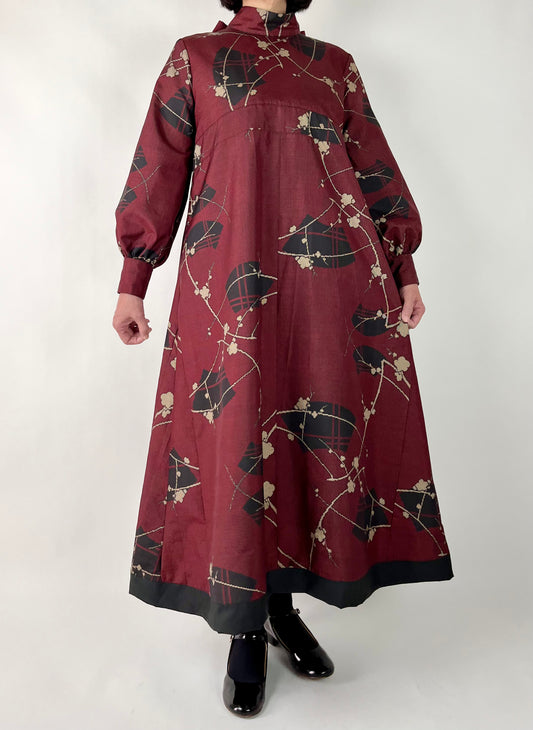 【アンティーク着物】ギャザーフレアスカートワンピースドレス