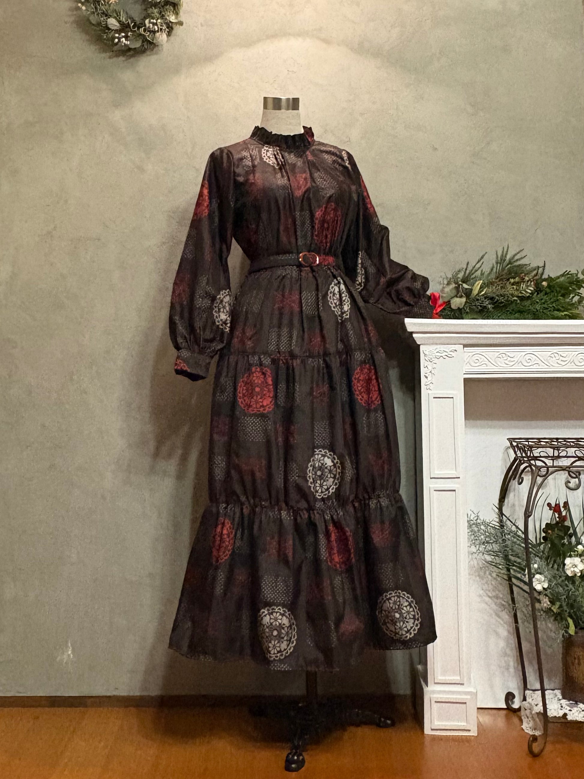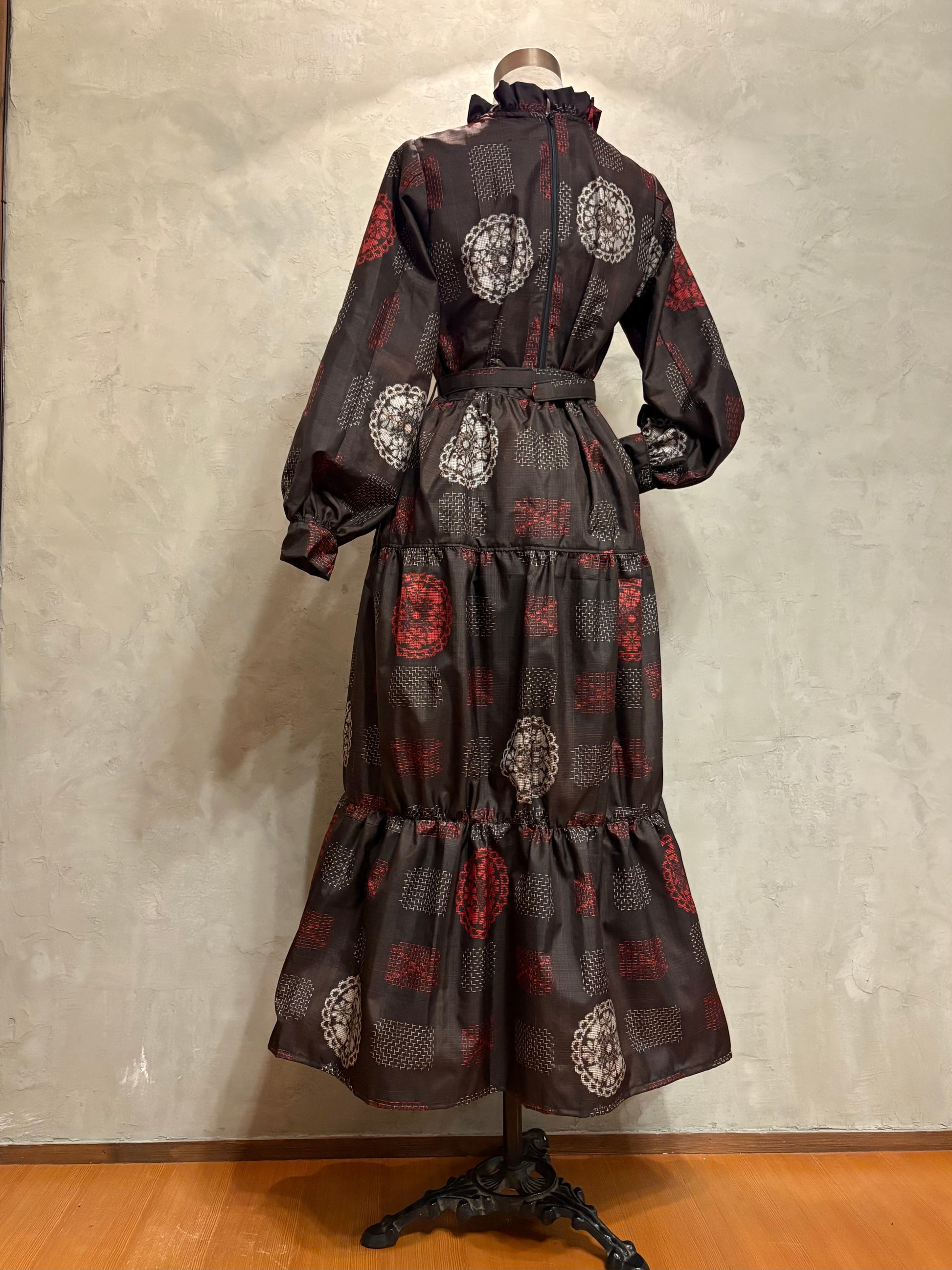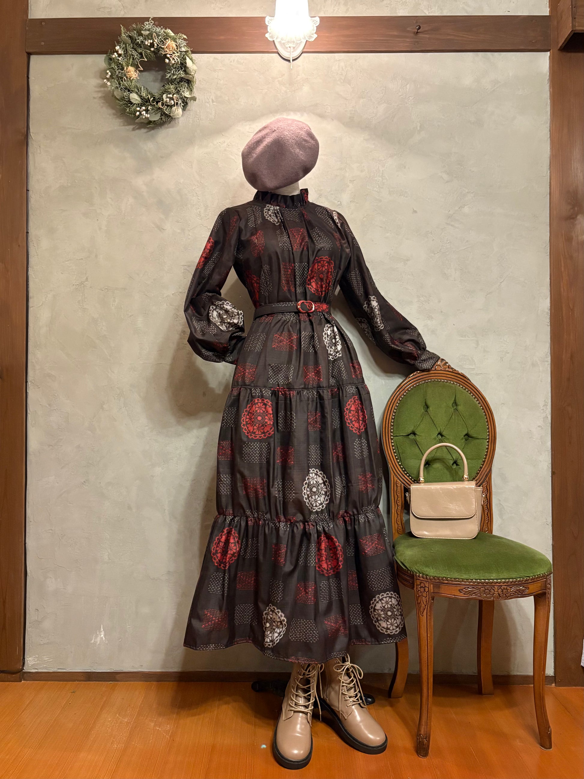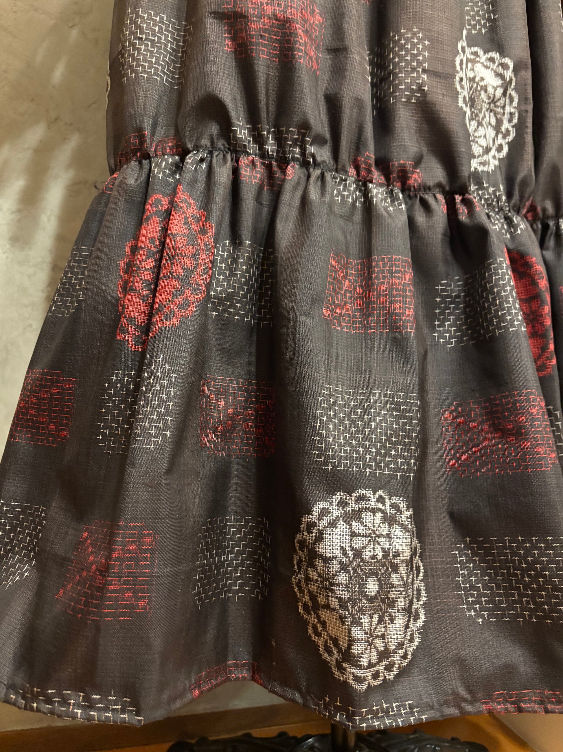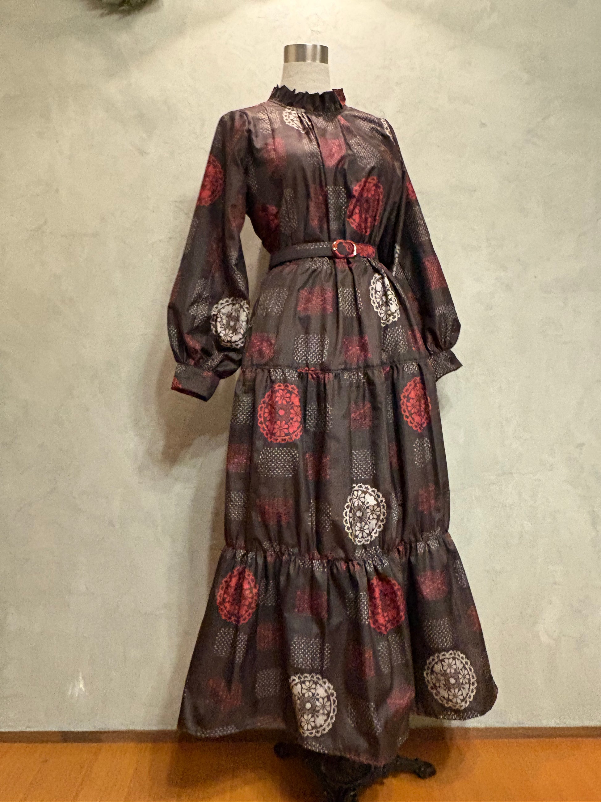 スカートは3段切り替えで広がりの少ないティアードスカート