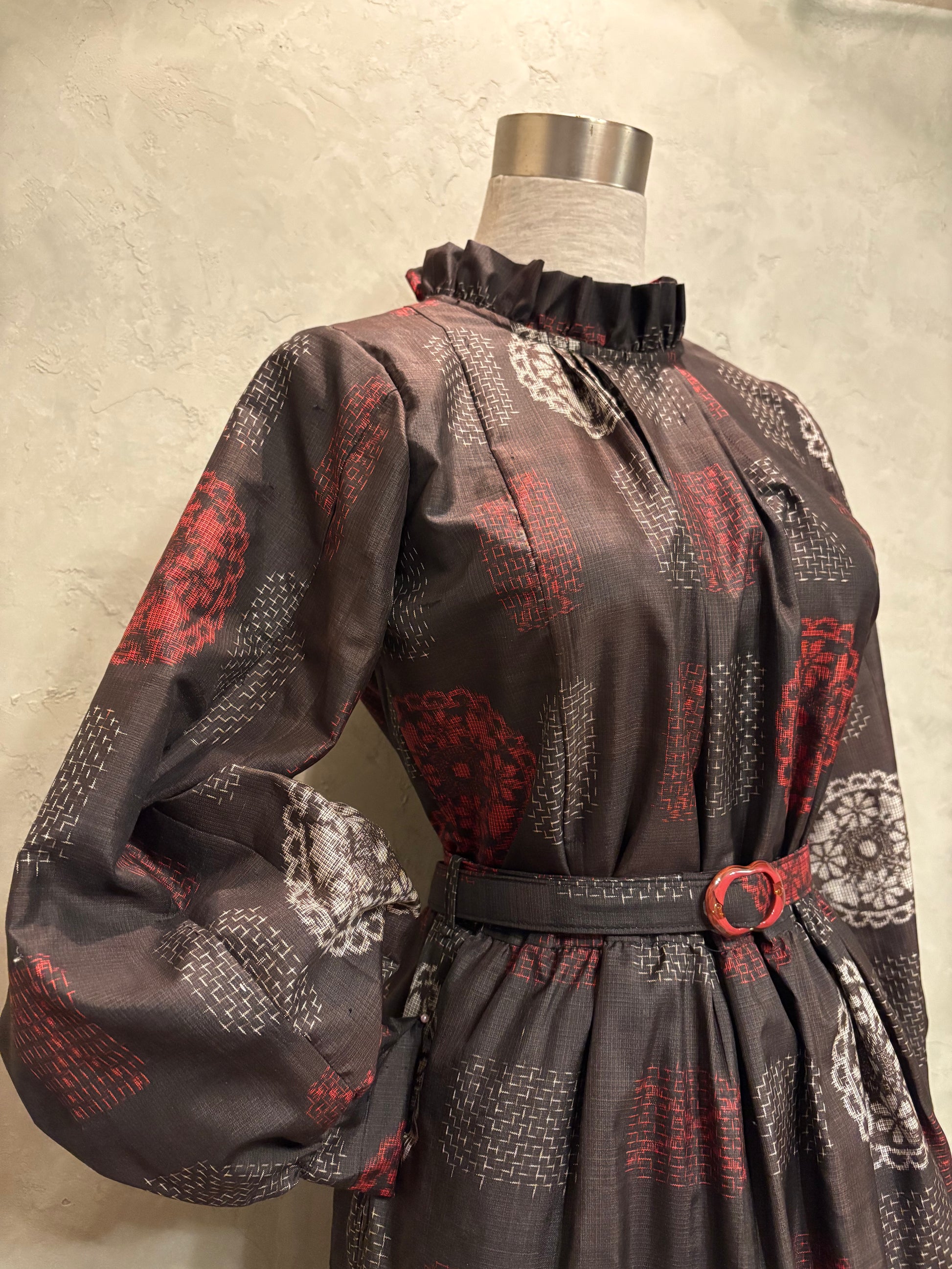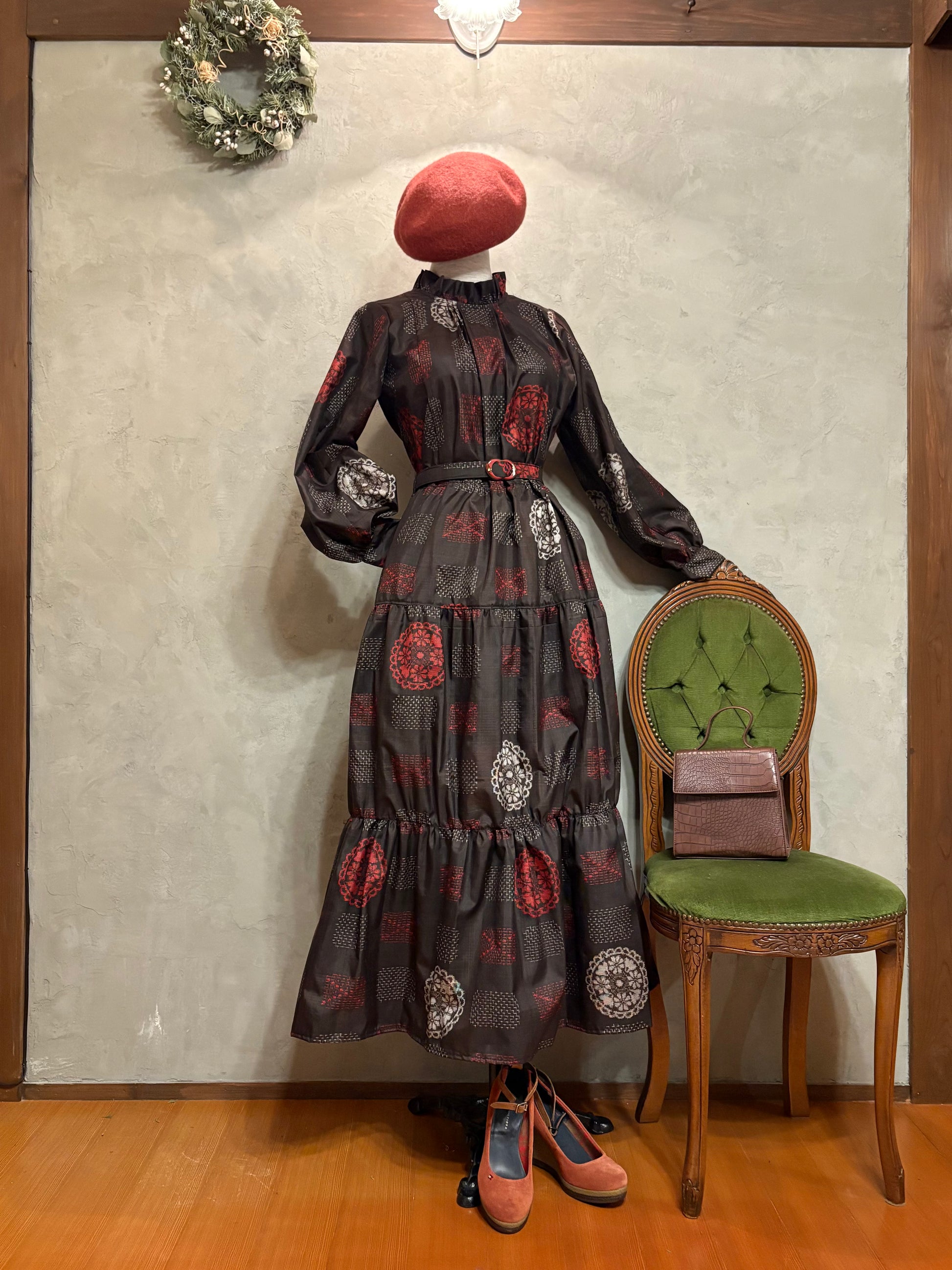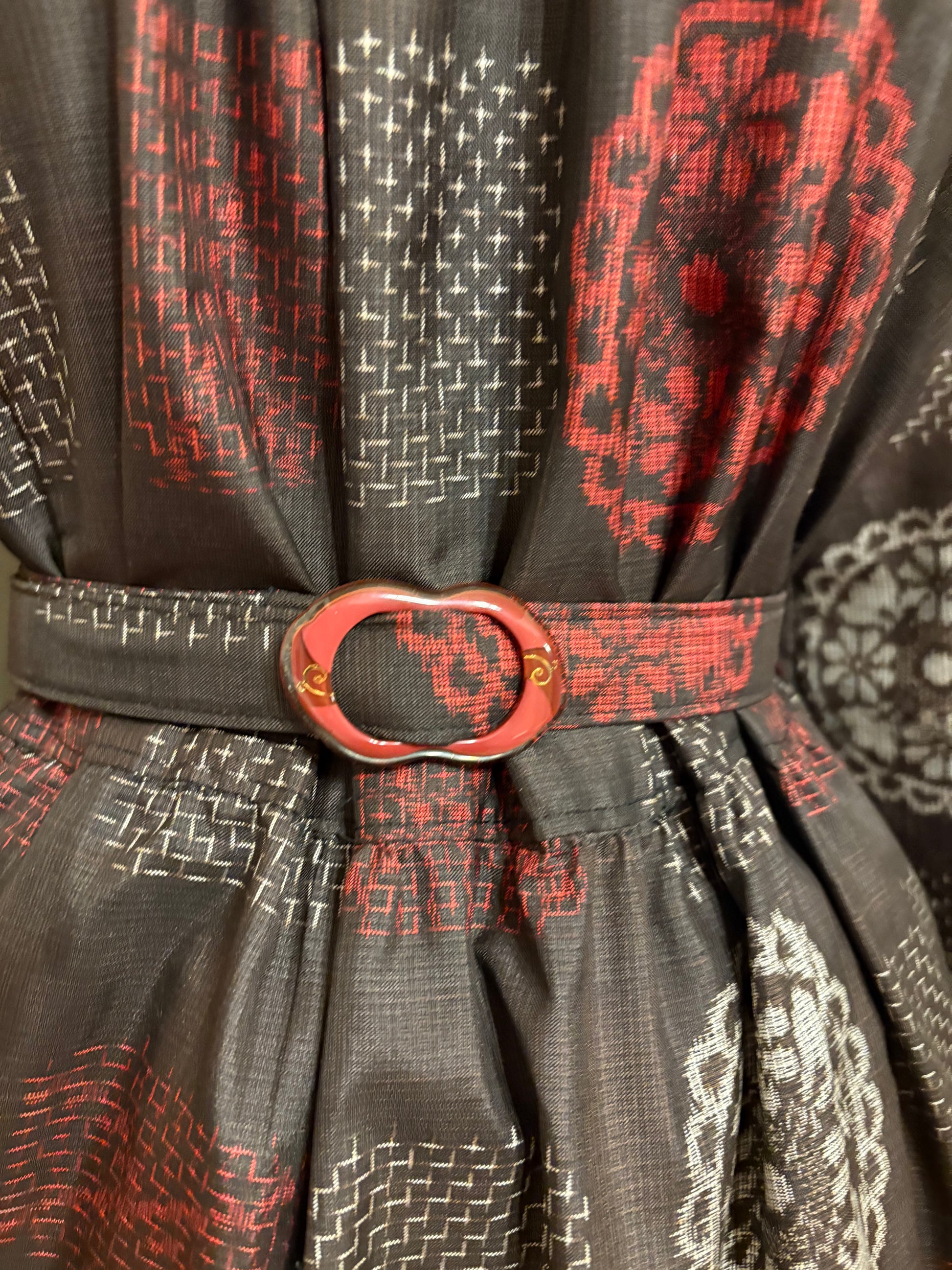 ウエストはレトロバックルのベルトでウエストマーク、ご自分のサイズに調整可能