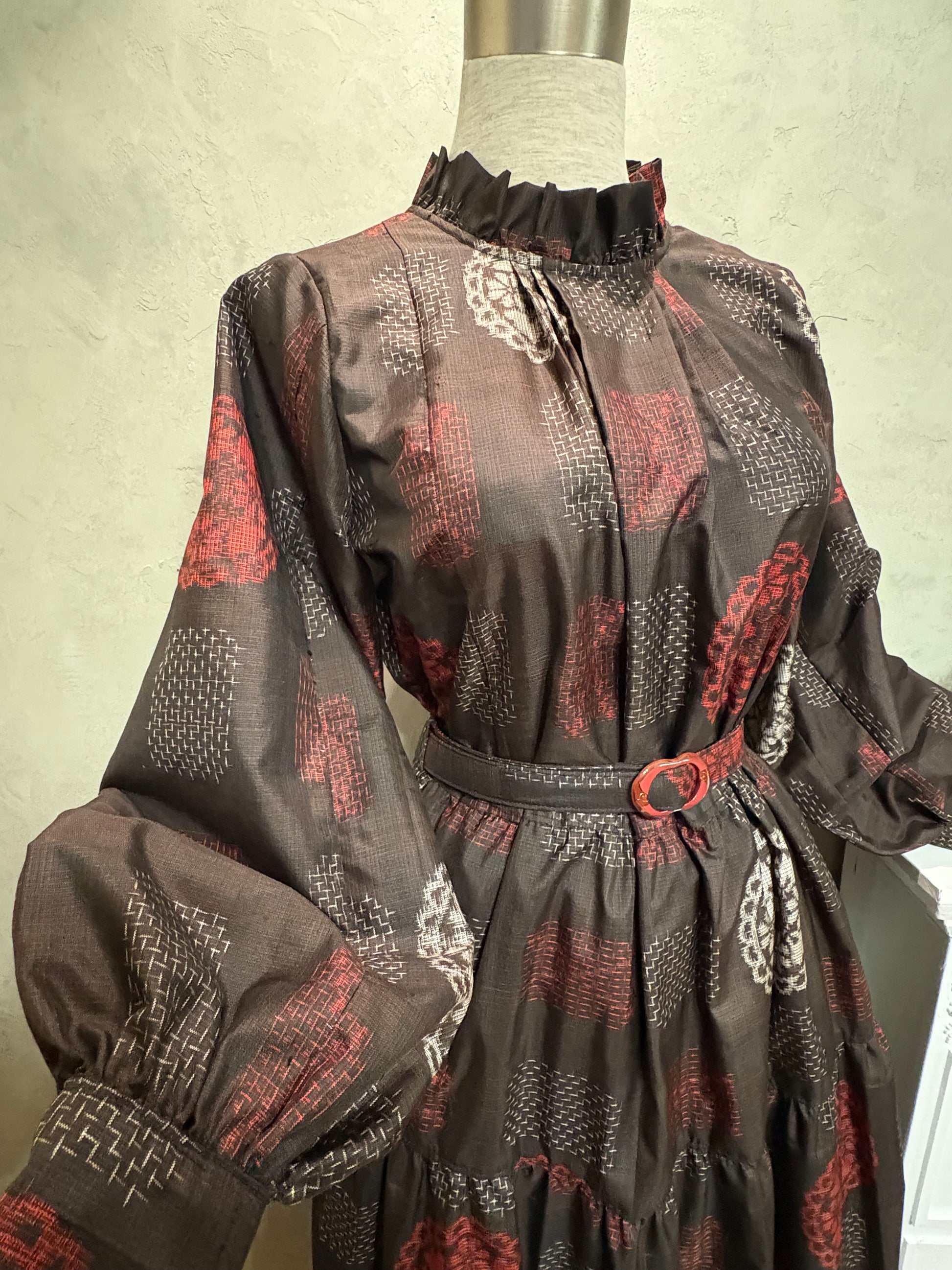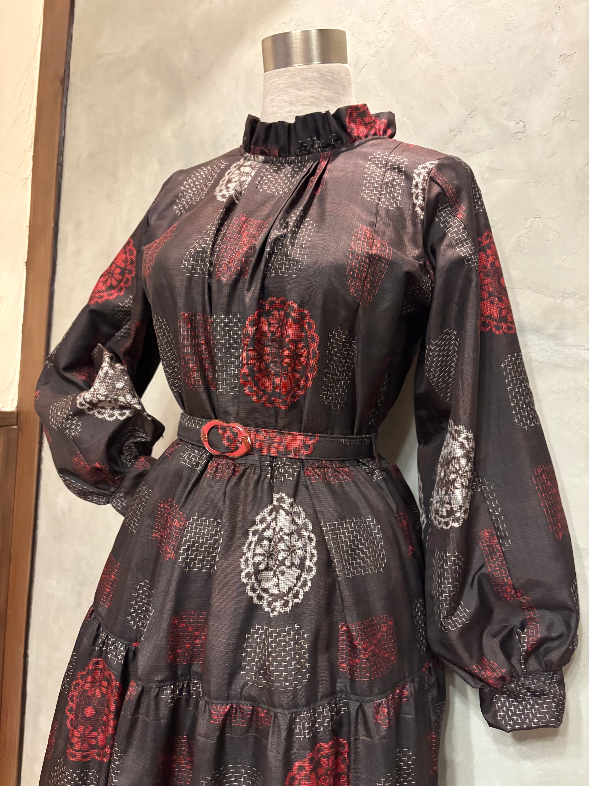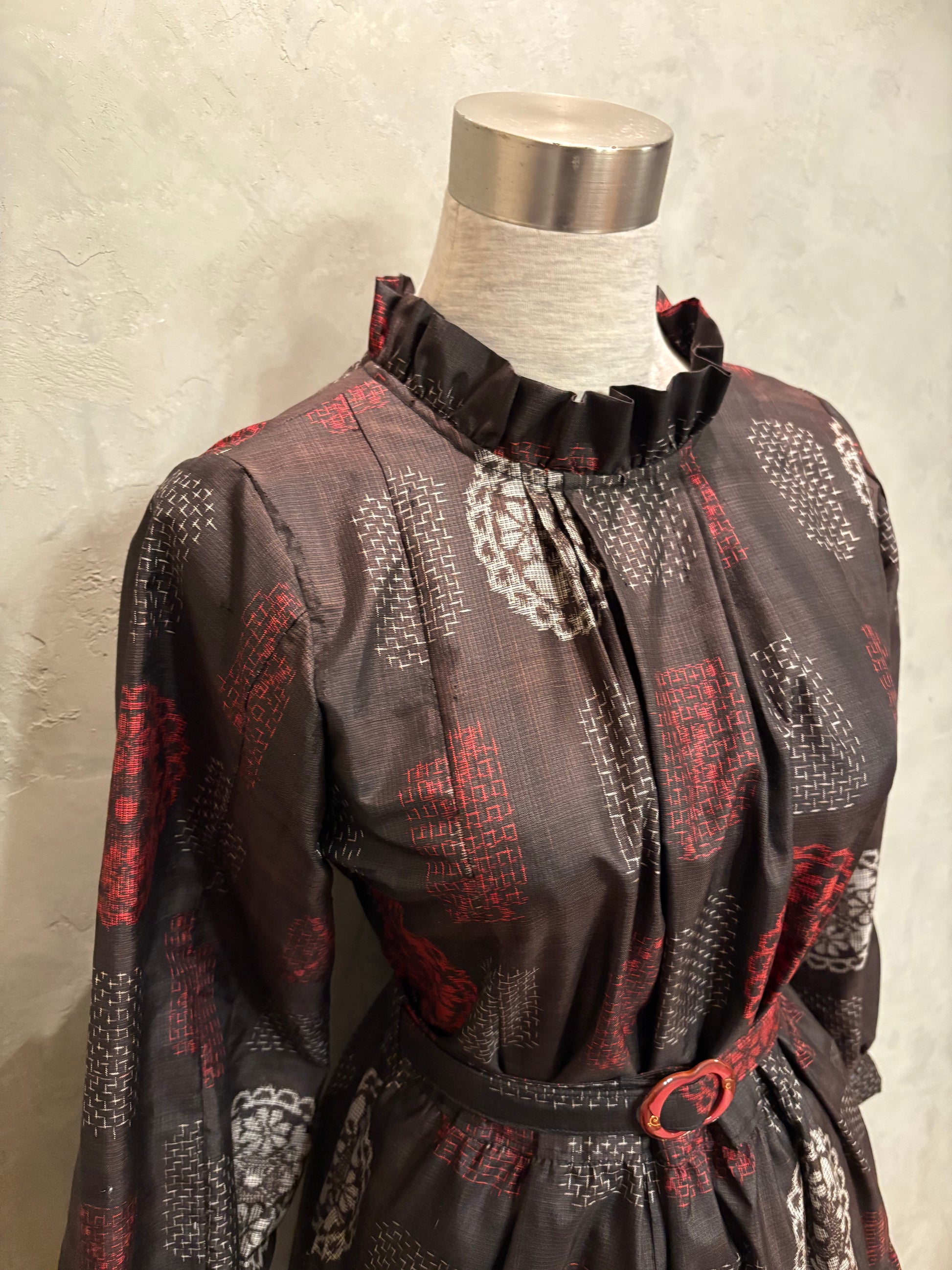 ウエストはレトロバックルのベルトでウエストマーク、ご自分のサイズに調整可能